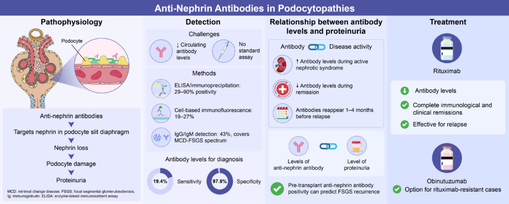 - Shu, Y., Huang, J., Jiang, L., Zhang, Y., Wang, F., Wang, X., Meng, L., Cheng, X., Liu, G., Wang, S., Zhao, M., Ronco, P., & Cui, Z. (2025). Anti-nephrin antibodies in adult Chinese patients with minimal change disease and primary focal segmental glomerulosclerosis. Kidney International. https://doi.org/10.1016/j.kint.2025.02.028